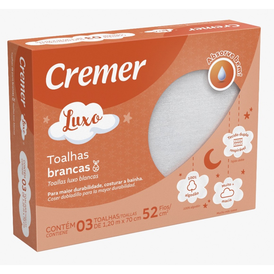 TOALHA FRALDA CREMER BRANCA LUXO - CX C/3 Unidades