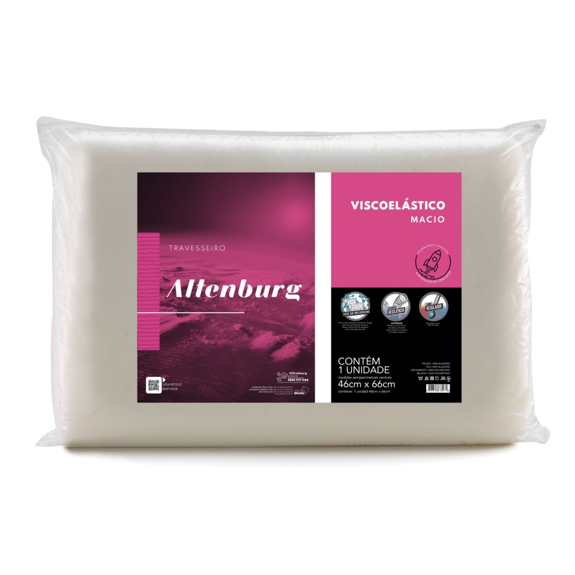 TRAVESSEIRO NASA ALTENBURG VISCOELASTICO, EVITA O ODOR CAUSADO POR BACTERIAS E FUNGOS, MOLDA-SE AOS CONTORNOS DA CABEÇA, NÃO AQUECE COM O CALOR DO CORPO, A REVOLUÇAO DO CONFORTO
