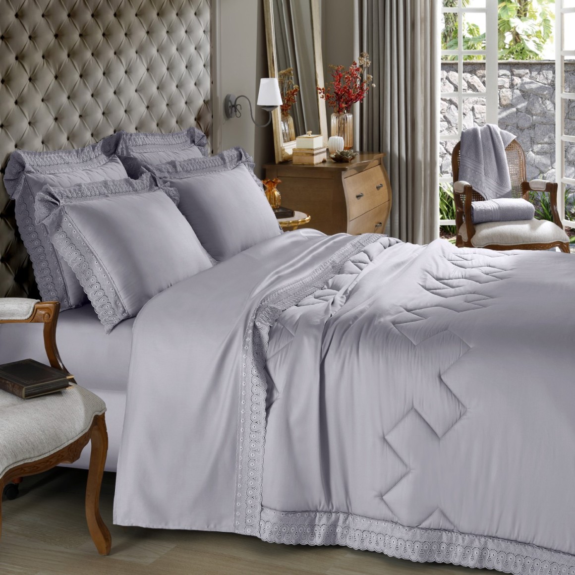 JOGO CAMA CASAL C/4 C/RENDA CRISTAL (300FIOS) - BUETTNER